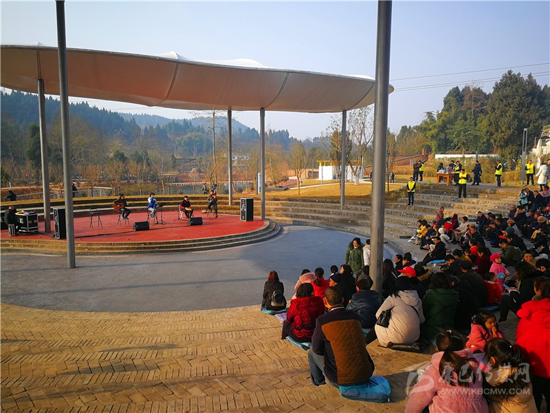 “遠處的東山俯望著平靜的旌湖水,它流淌著,帶走了年輕的歲月……這就是我的家德陽,遠方的人回來吧!”1月19日上午,在旌陽區(qū)東湖街道高槐村里傳來動聽的民謠。遠遠看去,村民們圍坐在“田野秀場”正聽著樂隊歌唱,不時還跟著音樂打著拍子。