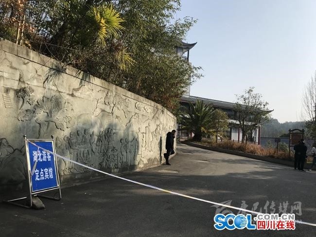 川北民俗文化園是此次廣元市確定的湖北游客定點賓館之一,1月29日,記者在川北民俗文化園看到,酒店門口有清楚的“湖北游客定點賓館”標牌,2位戴著口罩的保安負責在門口勸返其他游客。院內(nèi)有10多位帶著工作證的工作人員在執(zhí)勤,對記者也進行了詢問。