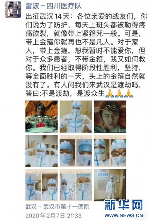 據(jù)雷波介紹,他所在的四川第一批援助湖北醫(yī)療隊(duì)的醫(yī)護(hù)人員都是各大醫(yī)院的中堅(jiān)力量,出生于上世紀(jì)70年代末至80年代中期的比較多。這代人應(yīng)該都看過周星馳的電影,應(yīng)該對《大話西游》比較熟悉,能產(chǎn)生共鳴。