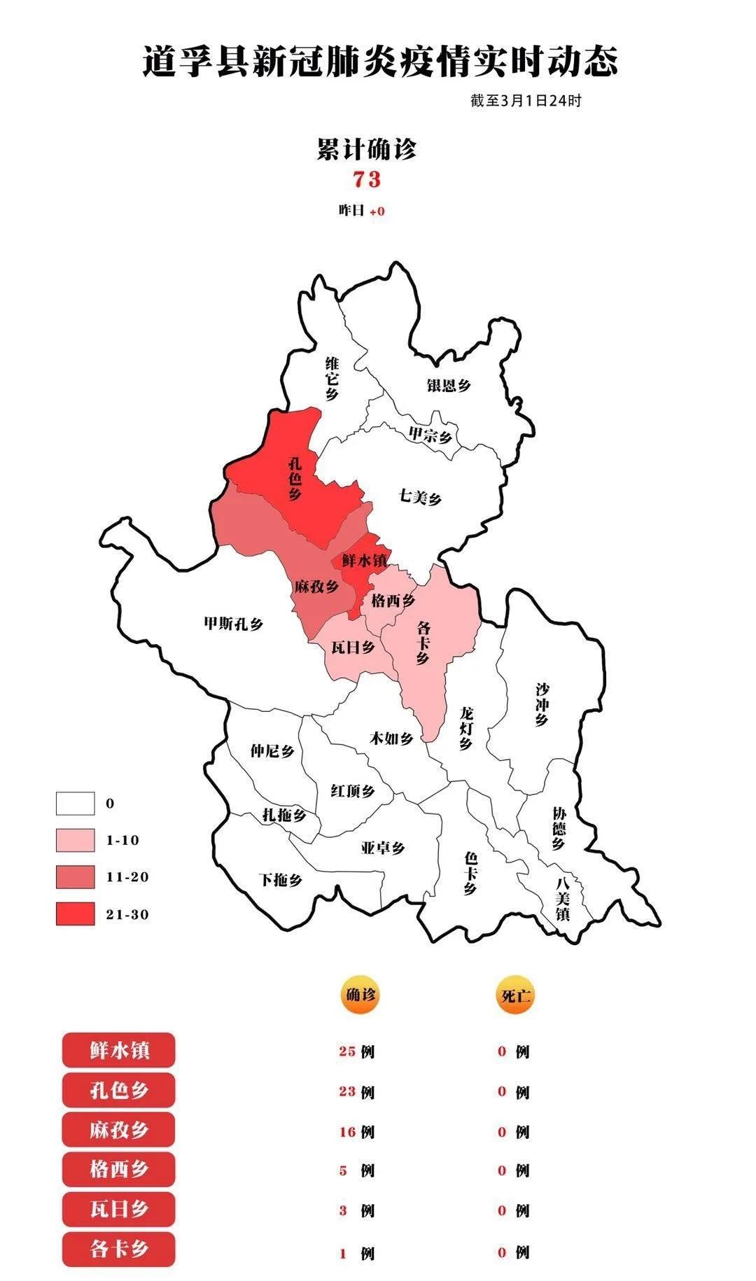 縣(市) 累計(jì)病例 新增病例 道孚縣 73 0 康定市 2 0 色達(dá)縣 2 0 稻城縣 1 0