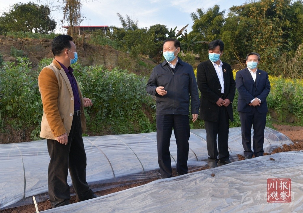 農(nóng)歷驚蟄時節(jié),田間地頭到處是機(jī)耕、播種、育秧的忙碌景象。彭清華來到瀘州市合江縣白米鎮(zhèn)斗笠村和自貢市榮縣雙石鎮(zhèn)大竹林村、蔡家堰村,實(shí)地了解農(nóng)村地區(qū)疫情防控、春耕備耕、生豬生產(chǎn)、農(nóng)民工外出務(wù)工等情況。