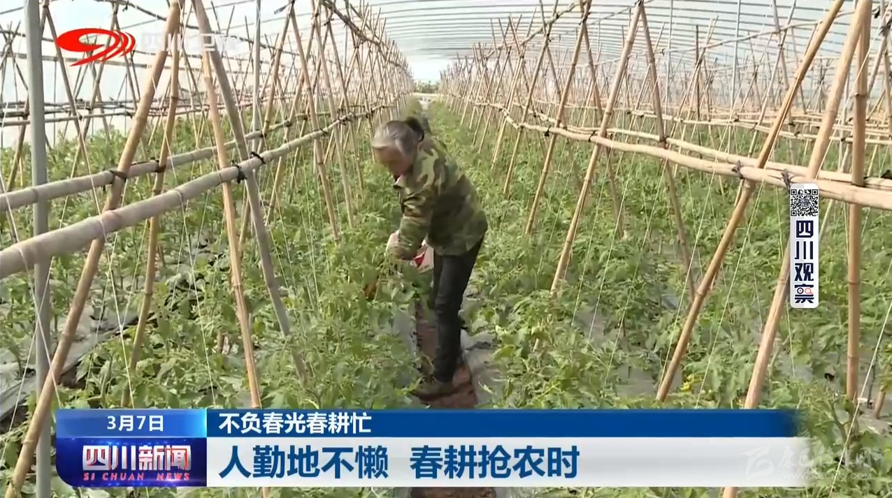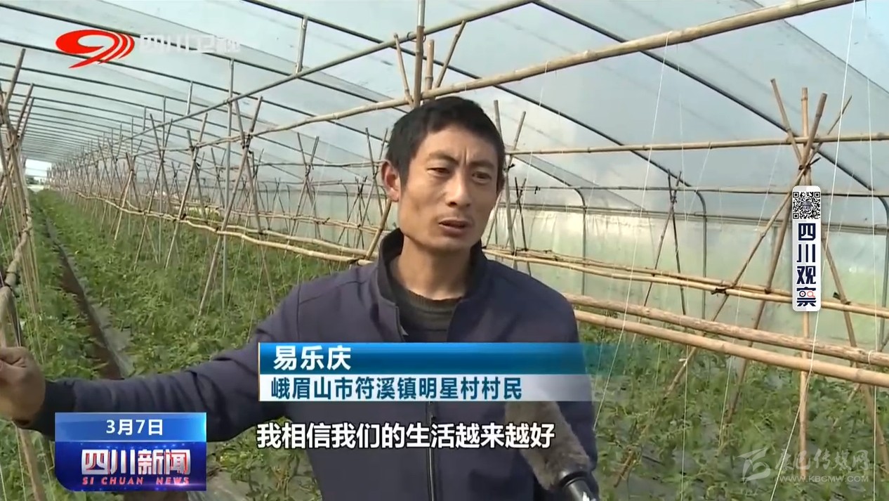 符溪鎮(zhèn)是峨眉山市的蔬菜生產(chǎn)基地,有大棚蔬菜種植面積近2萬畝。村民易樂慶和家人這幾天一直在蔬菜大棚里忙碌著。雖然今年受新冠肺炎疫情的影響,蔬菜的栽種時間比往年有所延遲,可看到已經(jīng)掛果的小番茄,對未來的生活他充滿了信心。