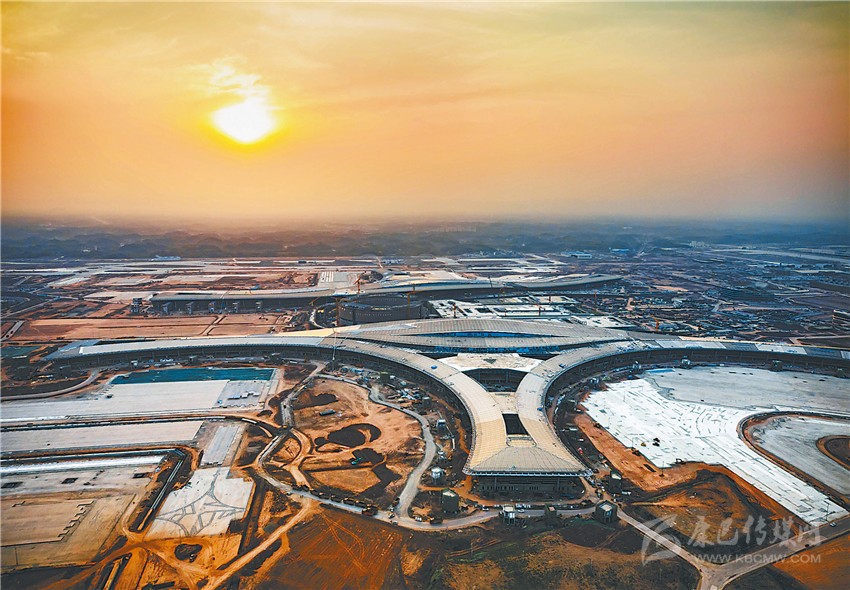 俯瞰晨曦中的成都天府國(guó)際機(jī)場(chǎng)施工現(xiàn)場(chǎng)。成都天府國(guó)際機(jī)場(chǎng)各項(xiàng)工程自全面復(fù)工以來(lái),在嚴(yán)格防疫的基礎(chǔ)上,力搶工期,加快建設(shè)。