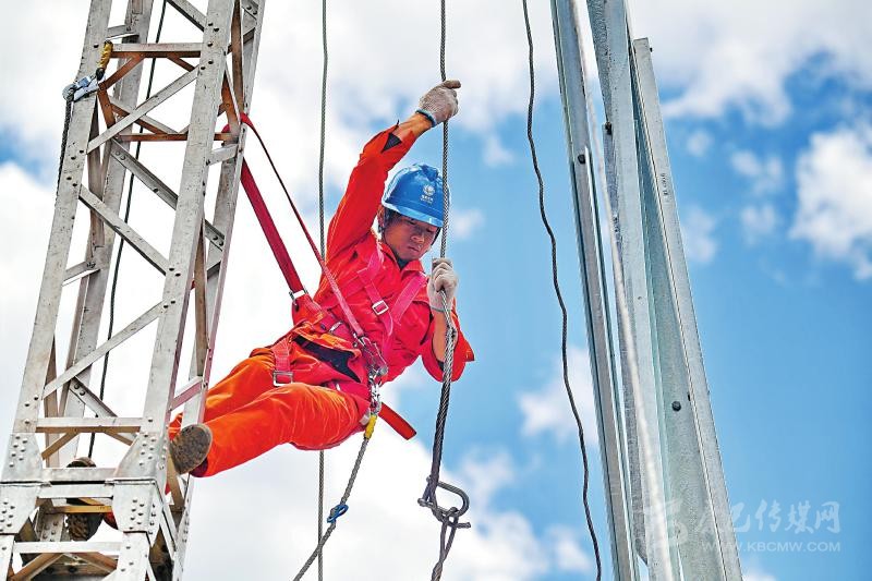 到達施工現(xiàn)場,組塔工作也是十分艱難,鐵塔結(jié)冰,僅登塔時間便多出一倍,而作業(yè)時間每次不能超過半小時,還要隨時面臨大風、大雨、冰雹等天氣,導致工期推進速度較平原地區(qū)慢一倍時間?!盀榱粟s在6月20日完成任務(wù),我連每天與女兒視頻的時間都省了,全力投入工作中?!表椖坎控撠煂Ь€展放的電力工人楊彪說。