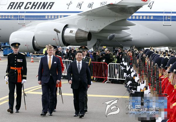 3月22日,國(guó)家主席習(xí)近平抵達(dá)阿姆斯特丹,應(yīng)荷蘭國(guó)王威廉-亞歷山大邀請(qǐng),對(duì)荷蘭進(jìn)行國(guó)事訪問,開啟歐洲之旅。威廉-亞歷山大在機(jī)場(chǎng)為習(xí)近平舉行隆重歡迎儀式。這是習(xí)近平在威廉-亞歷山大陪同下檢閱儀仗隊(duì)。新華社記者 鞠鵬 攝