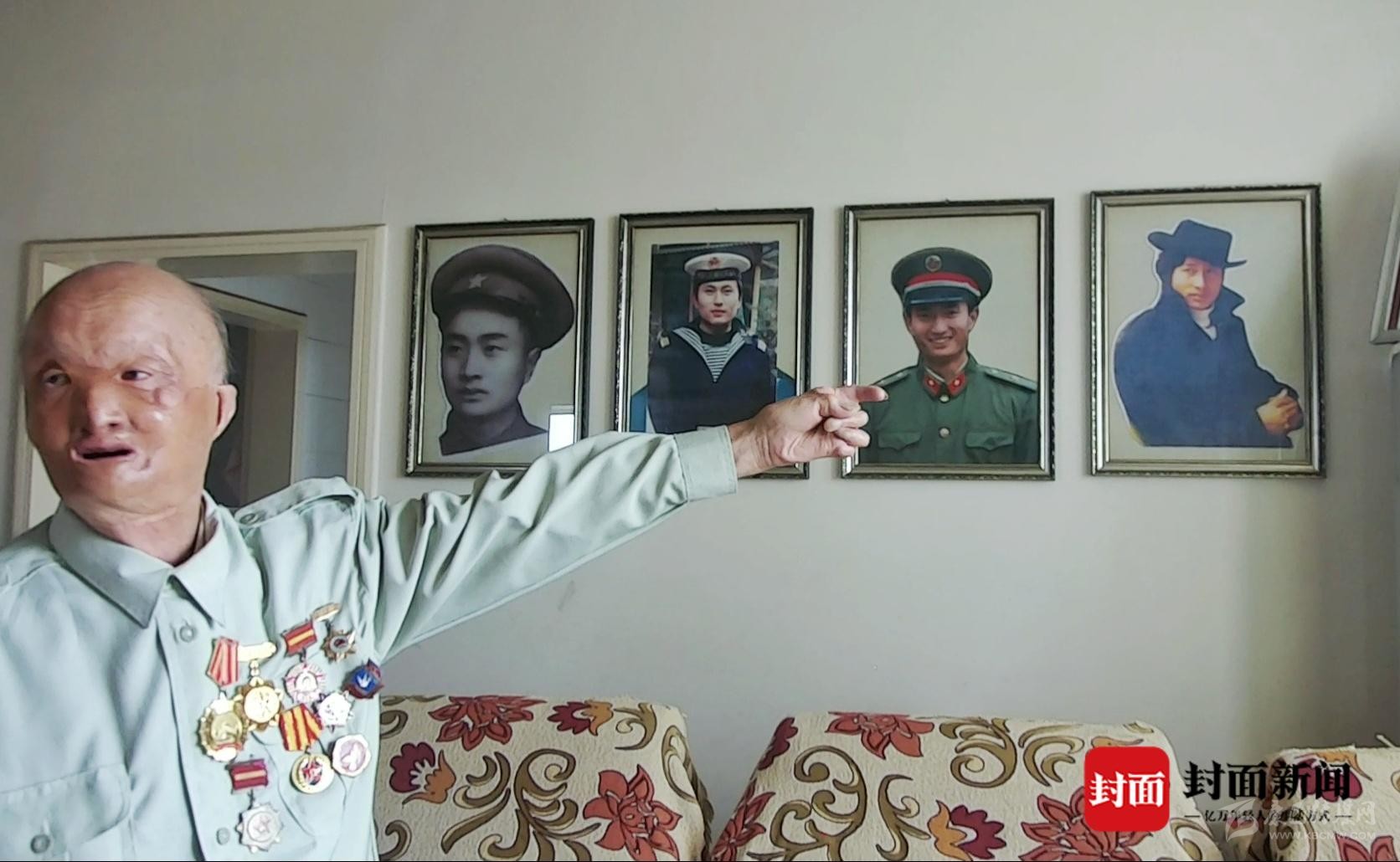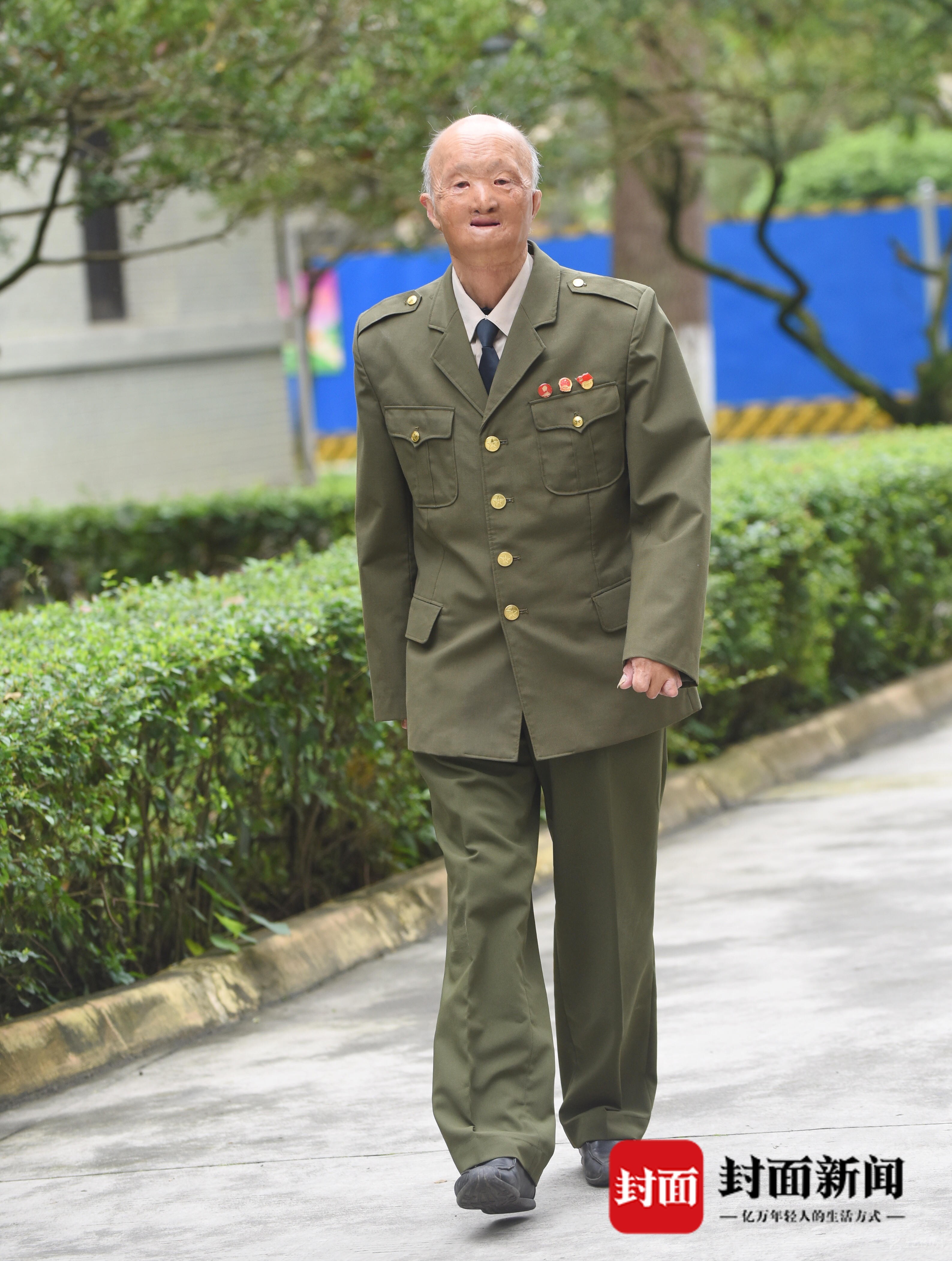 在東北、浙江等多家知名醫(yī)院輾轉(zhuǎn)治療,并經(jīng)歷了大大小小8次修復(fù)、整形手術(shù)后,他的傷情才得到了一些好轉(zhuǎn)?!懊看问中g(shù)最短的2個(gè)小時(shí),最長(zhǎng)的將近4小時(shí)?!蓖坎阏f,1954年,他回到四川,住進(jìn)四川省革命傷殘軍人休養(yǎng)院。