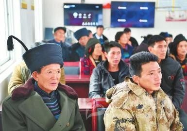 10月28日,把家里的幾頭豬安頓好后,涼山州美姑縣洛俄依甘鄉(xiāng)阿居曲村村民曲比曲千早早地趕到村委會(huì),收看當(dāng)天村上“云端夜?!钡牡谝惶眠h(yuǎn)程授課?!艾F(xiàn)在村里家家戶戶都養(yǎng)豬,收入好不好就看各家豬兒喂得肥不肥,今天是成都的專家講養(yǎng)殖,我眼睛又不太好,想坐前面點(diǎn)。”
