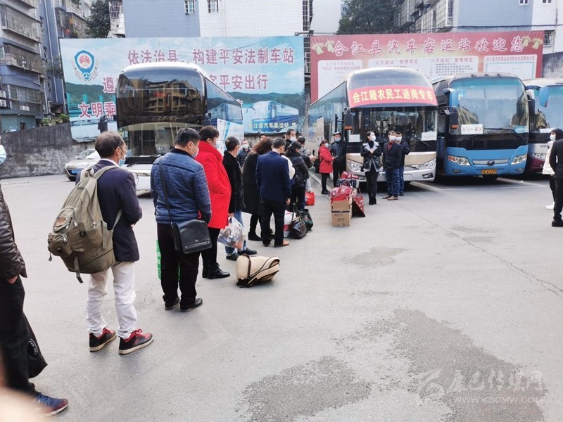 記者了解到,截至20日,合江返崗農(nóng)民工人數(shù)達(dá)3553人,為迎接農(nóng)民工返崗高峰期的到來,全縣各部門已作好準(zhǔn)備,將根據(jù)返崗農(nóng)民工的愿望和需求,持續(xù)開展返崗專車服務(wù),每天還將有從合江發(fā)往全國各地的專車,助力農(nóng)民工實(shí)現(xiàn)安全返崗務(wù)工。