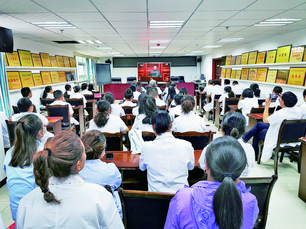 丹巴縣醫(yī)護(hù)人員集中觀看慶祝大會(huì)直播。
