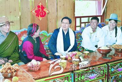 5月21日,省委書(shū)記王東明到道孚縣八美鎮(zhèn)雀爾村調(diào)研旅游新村建設(shè)情況。在藏族村民仁真翁姆家中,王東明親切地與她拉起家常,仔細(xì)詢(xún)問(wèn)就業(yè)、收入等情況。 川報(bào)記者 毛漫丁 攝