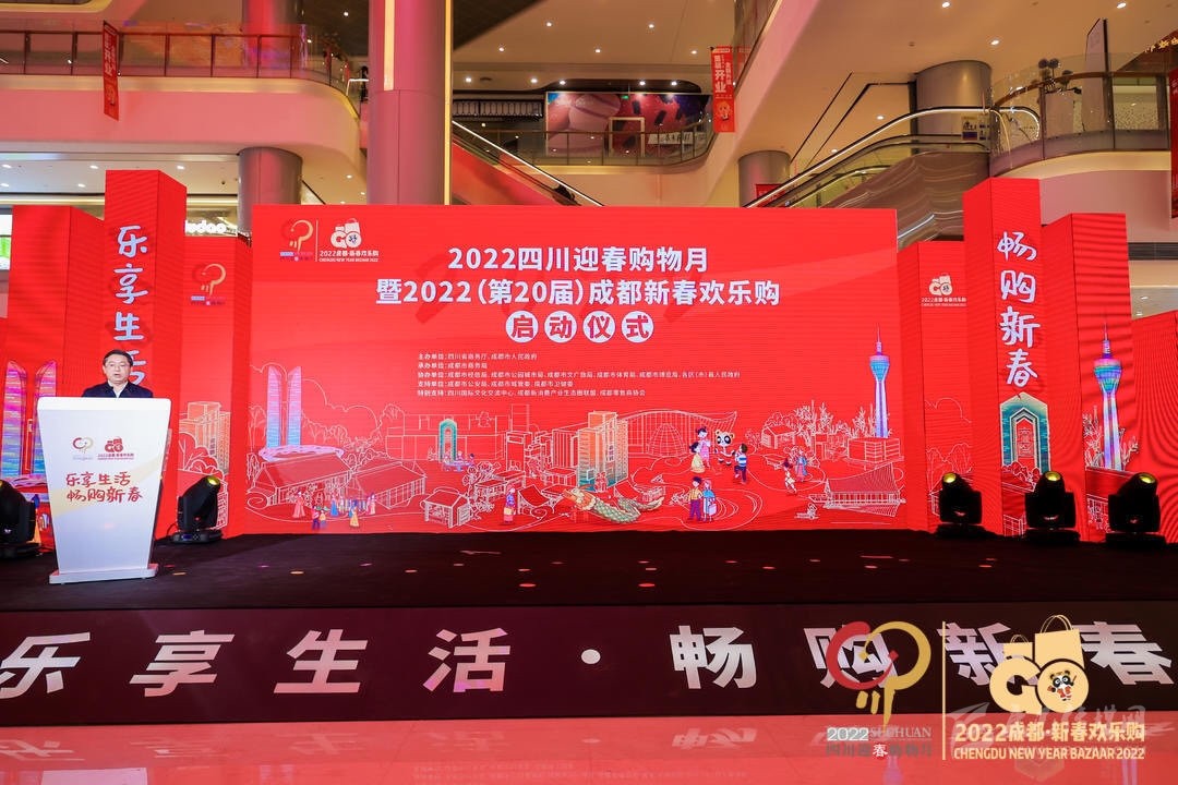 12月30日,由四川省商務(wù)廳、成都市人民政府主辦,成都市商務(wù)局承辦的“2022四川迎春購(gòu)物月暨成都新春歡樂(lè)購(gòu)”啟動(dòng)儀式在蓉啟動(dòng)。活動(dòng)現(xiàn)場(chǎng),成都新春歡樂(lè)購(gòu)活動(dòng)以沉浸式互動(dòng)劇的形式繽紛呈現(xiàn),成渝雙城聯(lián)袂開(kāi)展促銷活動(dòng),為元旦、春節(jié)“買(mǎi)買(mǎi)買(mǎi)”備足消費(fèi)大餐。