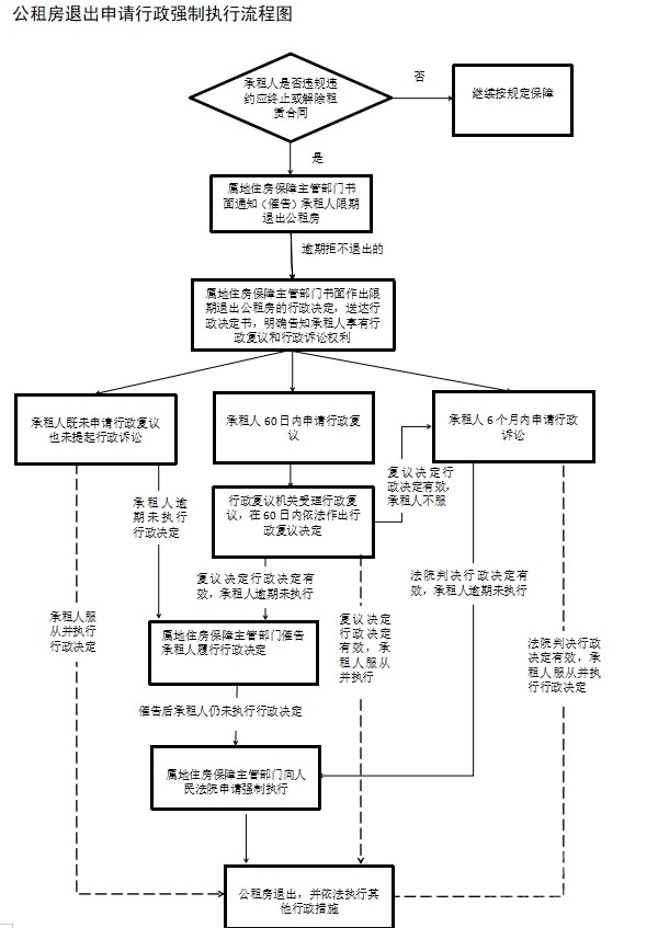 根據(jù)《指導(dǎo)手冊(cè)》,公租房退出以承租人行為和情形不同分為退回和騰退兩種方式,屬地住房保障主管部門對(duì)承租人到期拒不退出房屋及設(shè)施設(shè)備的,應(yīng)作出責(zé)令其限期騰退公租房的書(shū)面決定,逾期仍不履行的,可依法向人民法院申請(qǐng)行政強(qiáng)制執(zhí)行,“剛?cè)岵?jì)”解決公租房退房難問(wèn)題。