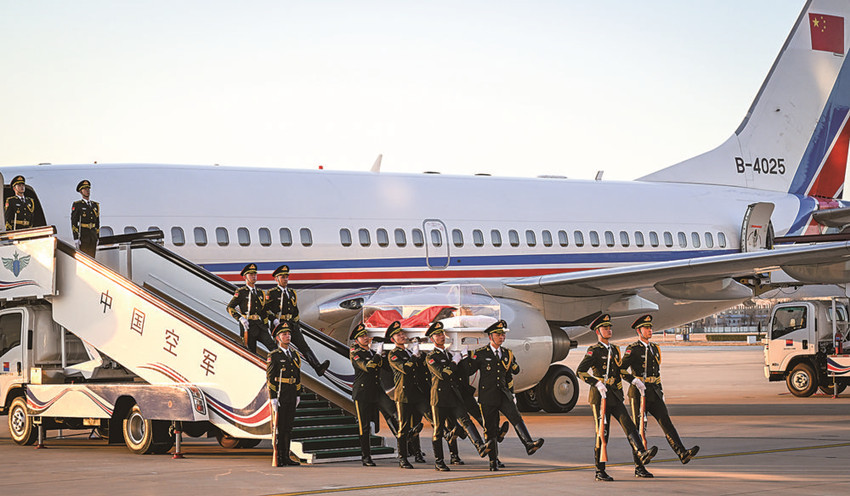 12月1日,江澤民同志的遺體從上海由專機(jī)敬移到達(dá)北京。 新華社記者 李學(xué)仁 攝