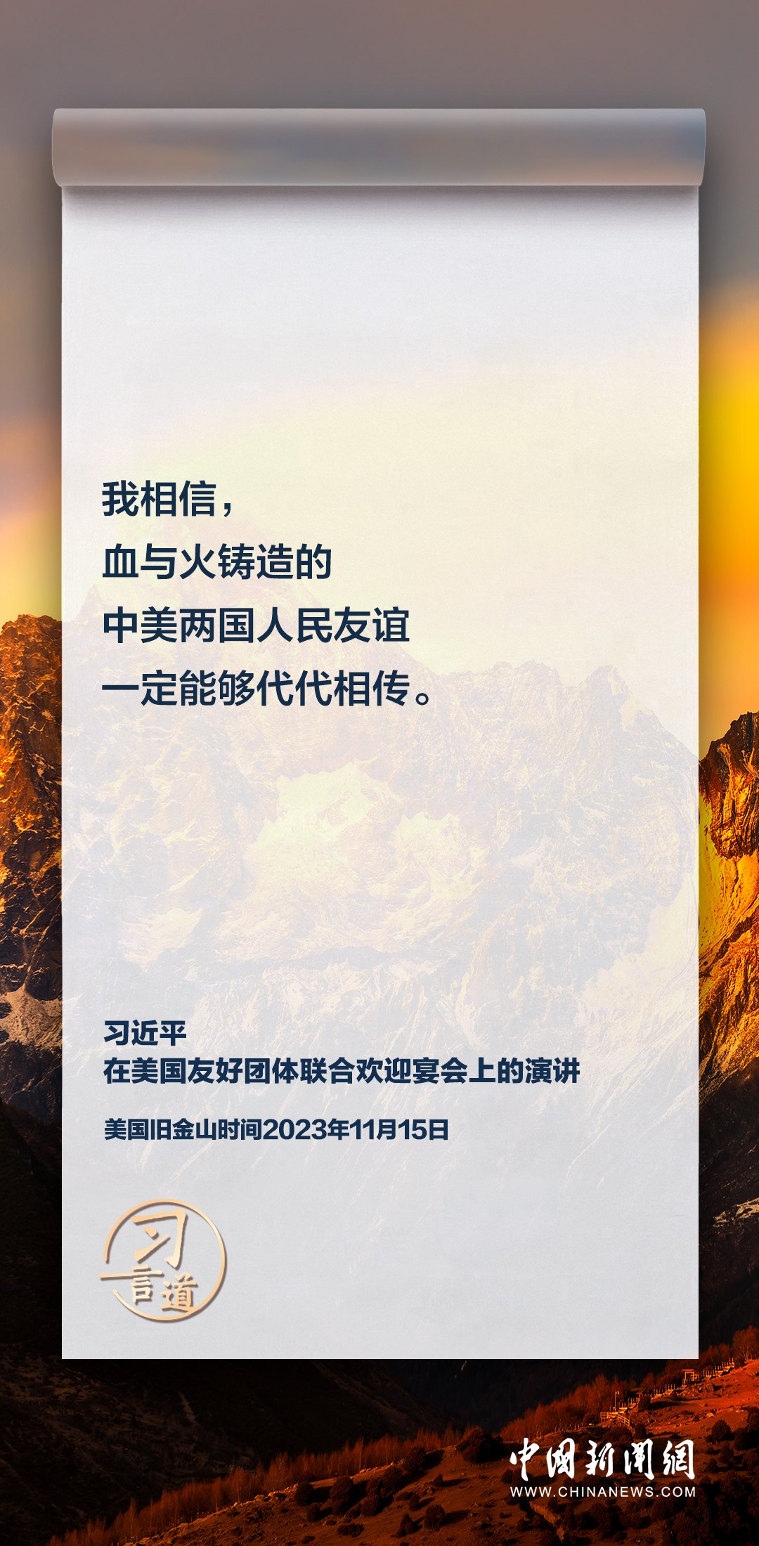 當(dāng)?shù)貢r間11月15日,中國國家主席習(xí)近平在美國舊金山出席美國友好團(tuán)體聯(lián)合歡迎宴會并發(fā)表演講。習(xí)近平在演講中從“我”和“我們”說起,提出中國主張、表明中國立場、展現(xiàn)大國擔(dān)當(dāng),話語擲地有聲。
