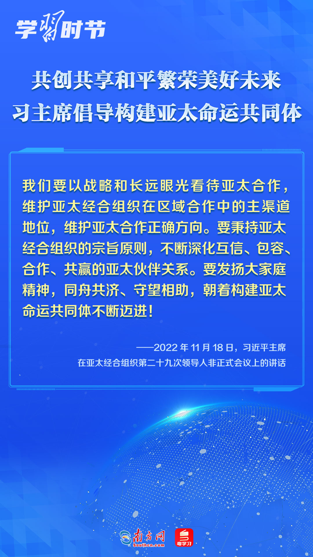 中國(guó)一直是APEC的積極參與者、貢獻(xiàn)者,為推動(dòng)建設(shè)亞太大家庭發(fā)揮了重要作用。習(xí)近平主席多次出席APEC會(huì)議,以中國(guó)主張促進(jìn)亞太合作,以中國(guó)貢獻(xiàn)推動(dòng)亞太發(fā)展,以中國(guó)智慧凝聚亞太共識(shí),多次闡述構(gòu)建開放包容、創(chuàng)新增長(zhǎng)、互聯(lián)互通、合作共贏的亞太命運(yùn)共同體的理念主張和重大意義,讓我們一同學(xué)習(xí)。