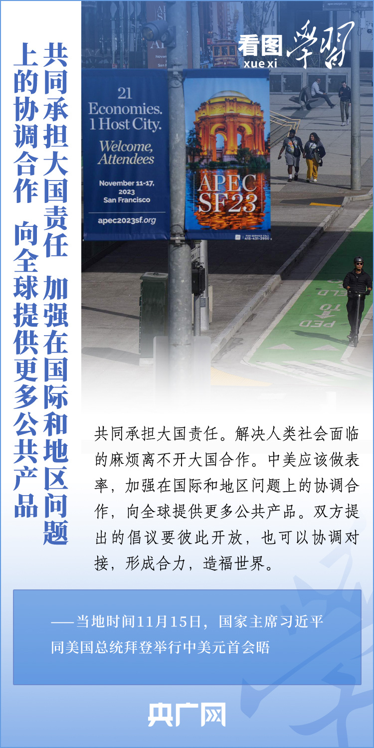 當(dāng)?shù)貢r(shí)間11月15日,國(guó)家主席習(xí)近平在美國(guó)舊金山斐洛里莊園同美國(guó)總統(tǒng)拜登舉行中美元首會(huì)晤。兩國(guó)元首就事關(guān)中美關(guān)系的戰(zhàn)略性、全局性、方向性問(wèn)題以及事關(guān)世界和平和發(fā)展的重大問(wèn)題坦誠(chéng)深入地交換了意見(jiàn)。習(xí)近平主席指出,大國(guó)競(jìng)爭(zhēng)解決不了中美兩國(guó)和世界面臨的問(wèn)題。這個(gè)地球容得下中美兩國(guó)。中美各自的成功是彼此的機(jī)遇。一起來(lái)學(xué)習(xí)!