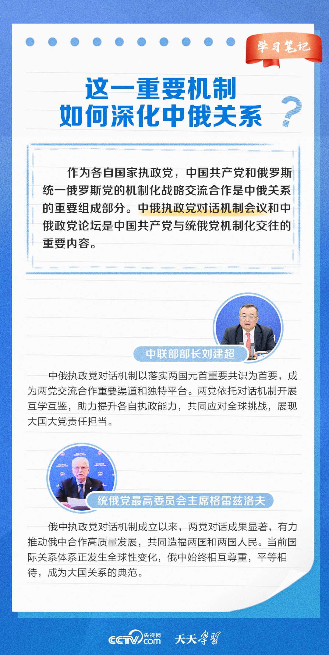 天天學(xué)習(xí)11月20日,中俄執(zhí)政黨對(duì)話機(jī)制第十次會(huì)議以視頻方式舉辦。習(xí)近平總書記同普京總統(tǒng)分別向會(huì)議致賀信。習(xí)近平總書記在賀信中強(qiáng)調(diào),中俄執(zhí)政黨對(duì)話機(jī)制已發(fā)展成為兩國鞏固政治互信、密切戰(zhàn)略協(xié)作、推進(jìn)互利合作的獨(dú)特渠道和平臺(tái)。