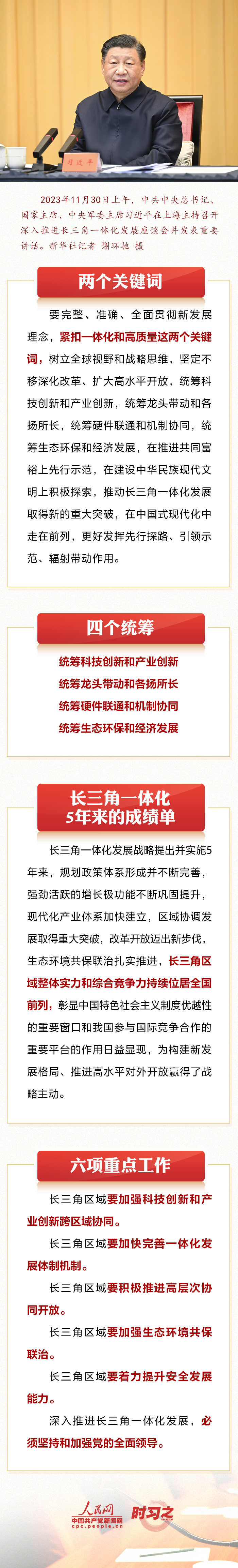 2023年11月30日上午,中共中央總書記、國家主席、中央軍委主席習(xí)近平在上海主持召開深入推進(jìn)長三角一體化發(fā)展座談會并發(fā)表重要講話。深入推進(jìn)長三角一體化發(fā)展,習(xí)近平強(qiáng)調(diào)這些“關(guān)鍵點(diǎn)”。