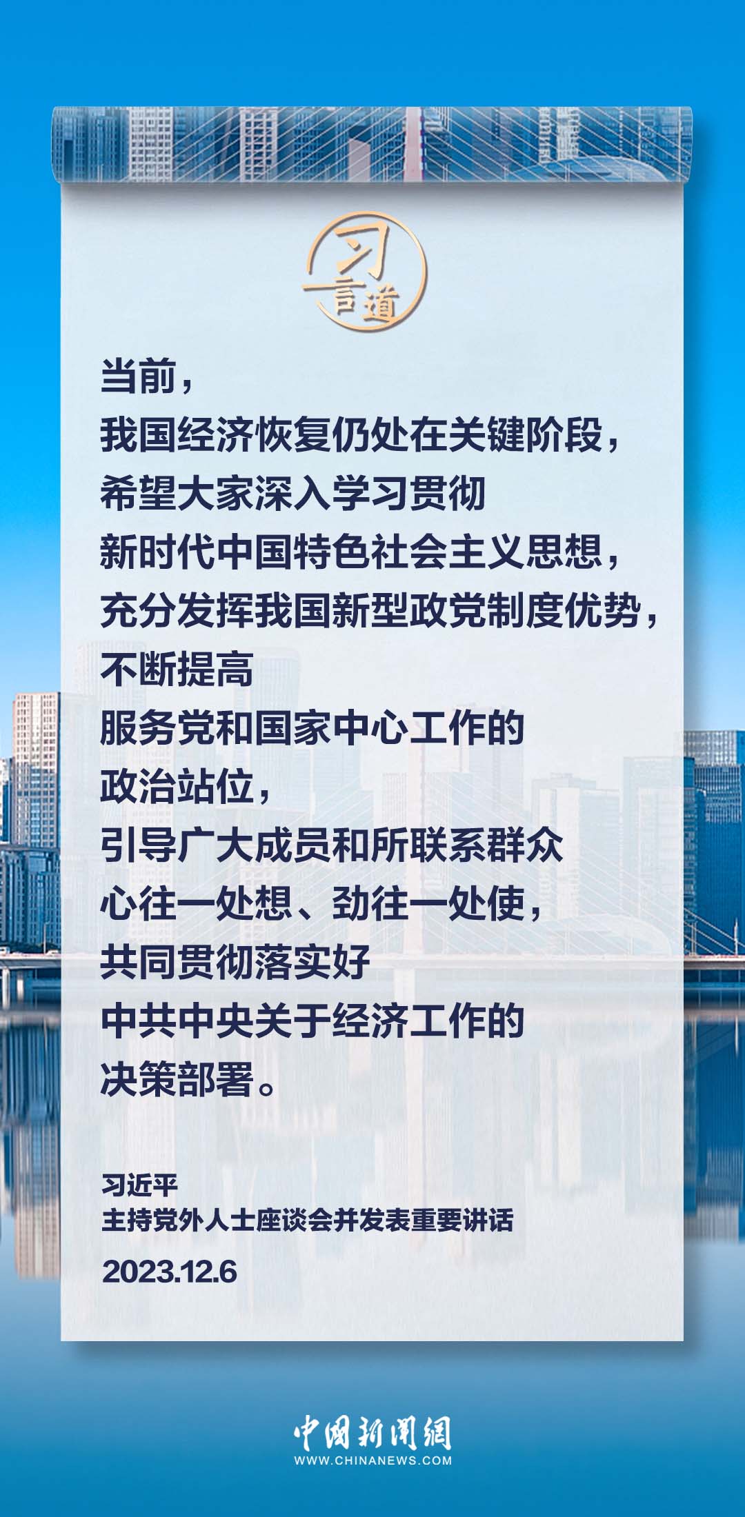 12月6日,中共中央在中南海召開黨外人士座談會,就今年經(jīng)濟(jì)形勢和明年經(jīng)濟(jì)工作聽取各民主黨派中央、全國工商聯(lián)負(fù)責(zé)人和無黨派人士代表的意見和建議。中共中央總書記習(xí)近平主持座談會并發(fā)表重要講話。