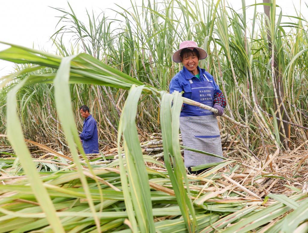 近日,在廣西來賓市興賓區(qū),蔗農(nóng)正在砍收甘蔗。新華社記者 胡星宇 攝