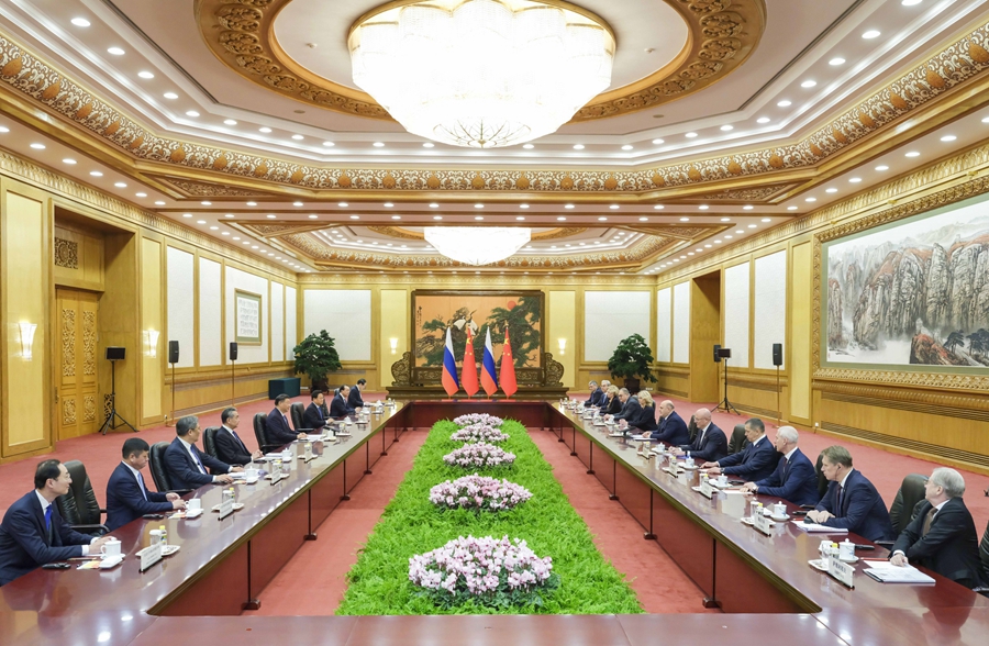 習(xí)近平強(qiáng)調(diào),中國(guó)經(jīng)濟(jì)韌性強(qiáng)、潛力大、回旋余地廣、長(zhǎng)期向好的基本面沒有改變。中國(guó)堅(jiān)定推動(dòng)高質(zhì)量發(fā)展,推進(jìn)高水平對(duì)外開放,將為包括俄羅斯在內(nèi)的各國(guó)發(fā)展提供新機(jī)遇。雙方要充分發(fā)揮政治互信、經(jīng)濟(jì)互補(bǔ)、設(shè)施互聯(lián)、民心互通優(yōu)勢(shì),不斷豐富合作內(nèi)涵,深化經(jīng)貿(mào)、能源、互聯(lián)互通等領(lǐng)域合作,共同維護(hù)產(chǎn)業(yè)鏈供應(yīng)鏈安全穩(wěn)定。雙方要辦好明后兩年中俄文化年,多設(shè)計(jì)、多開展豐富多彩的人文交流活動(dòng),夯實(shí)兩國(guó)世代友好的社會(huì)和民意基礎(chǔ)。
