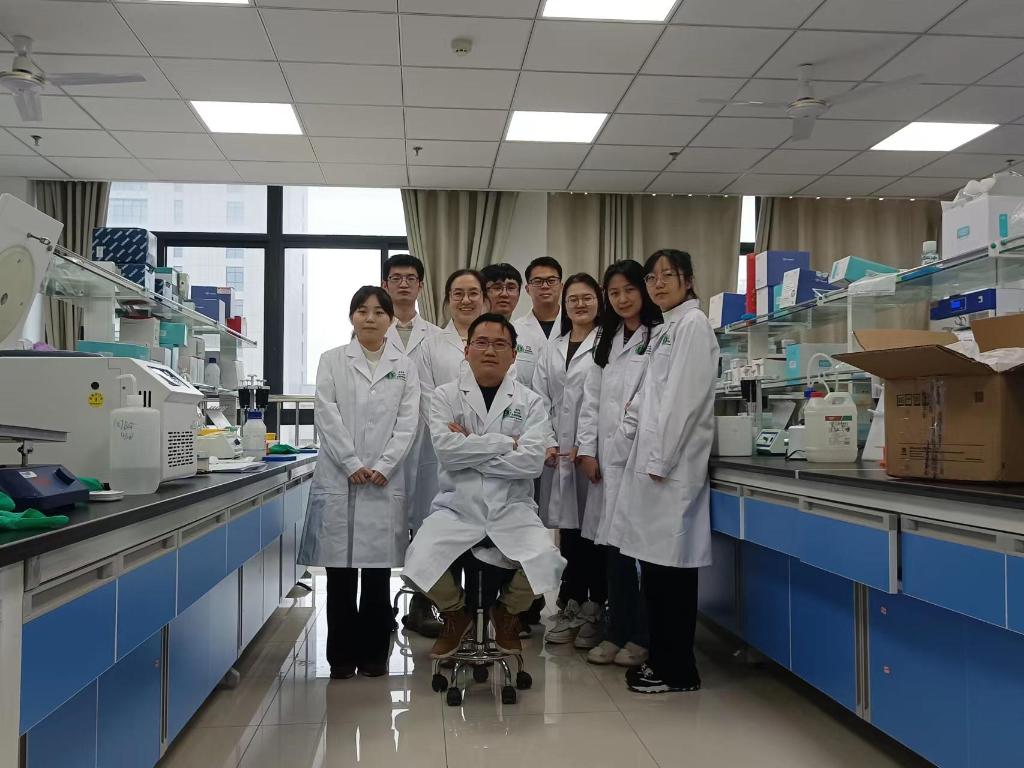 2021年,徐馬飛(前排居中)在安徽醫(yī)科大學(xué)的實驗室與科研團隊合影。(受訪者供圖)