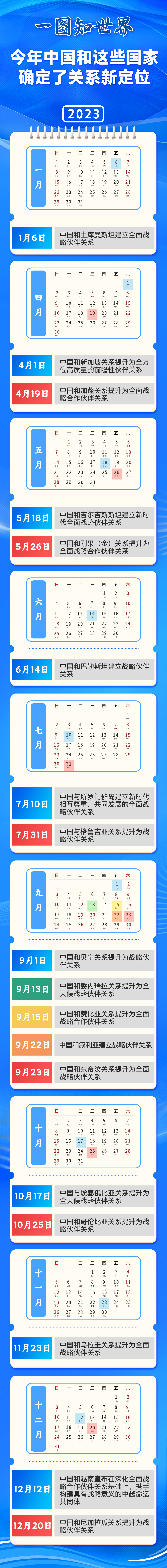 中國致力于同所有國家本著和平共處五項(xiàng)原則發(fā)展友好伙伴關(guān)系。中國的好朋友遍天下。今年以來,中國和哪些國家確定了關(guān)系新定位?我們來一圖讀懂——