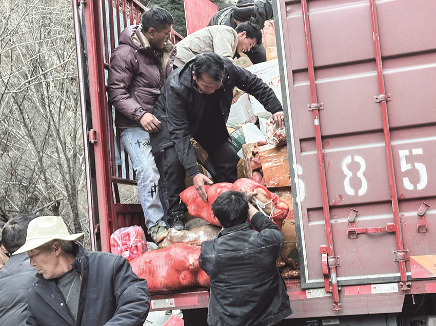 生鮮貨車行駛途中側(cè)翻,貨物撒落一