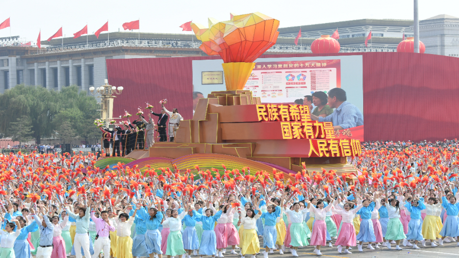 ??篇篇賀詞,團(tuán)結(jié)是“大江南北披上紅色盛裝,人們臉上洋溢著自豪的笑容,《我和我的祖國》在大街小巷傳唱”;是“逆行出征的豪邁”“頑強(qiáng)不屈的堅(jiān)守”“患難與共的擔(dān)當(dāng)”“英勇無畏的犧牲”“守望相助的感動”;是“廣大軍民不畏艱險(xiǎn),同心協(xié)力抗洪救災(zāi)”……