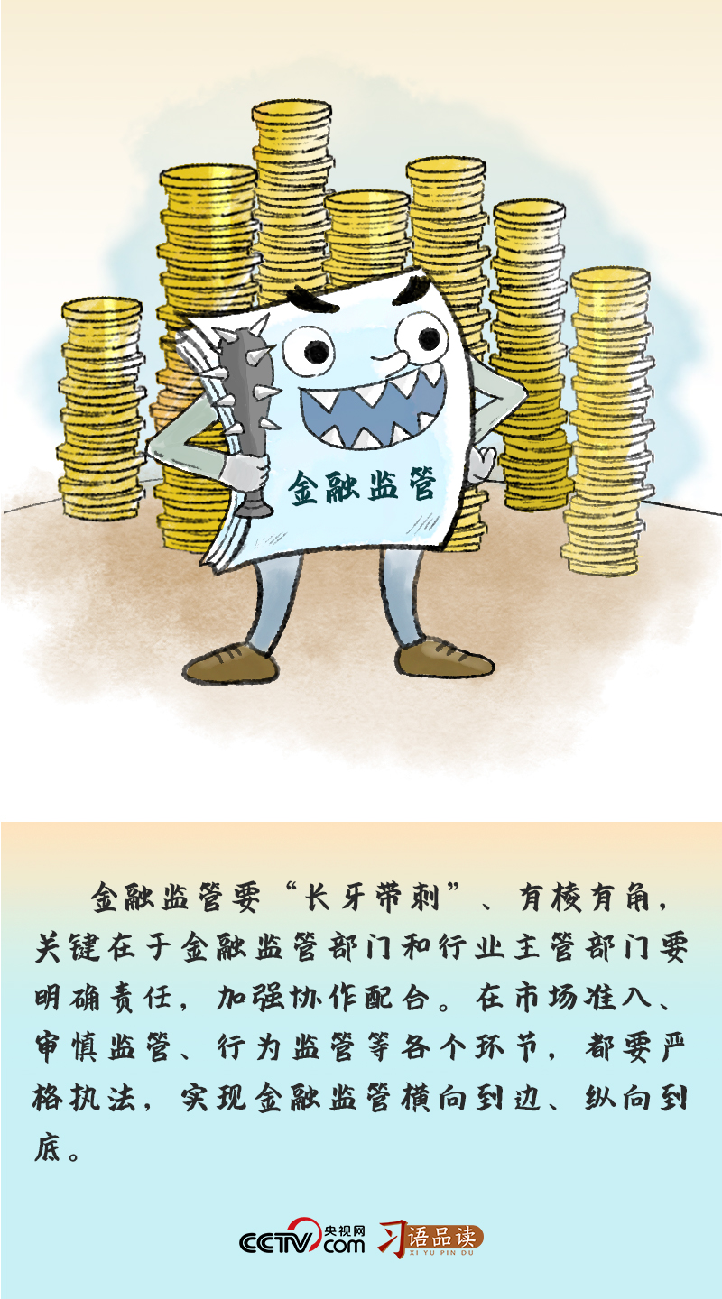 “‘長(zhǎng)牙帶刺’、有棱有角”,表明加強(qiáng)金融監(jiān)管要綜合施策、不留死角。全面加強(qiáng)金融監(jiān)管是一項(xiàng)系統(tǒng)工程,需要多方參與、凝聚合力。金融管理部門(mén)和宏觀調(diào)控部門(mén)、行業(yè)主管部門(mén)、司法機(jī)關(guān)、紀(jì)檢監(jiān)察機(jī)關(guān)等都應(yīng)履行相應(yīng)職責(zé),金融機(jī)構(gòu)、投資者、消費(fèi)者等市場(chǎng)主體也應(yīng)樹(shù)立合規(guī)意識(shí),媒體和公眾也應(yīng)共同發(fā)揮監(jiān)督作用。唯有各方協(xié)作配合,才能形成全方位的監(jiān)管合力。