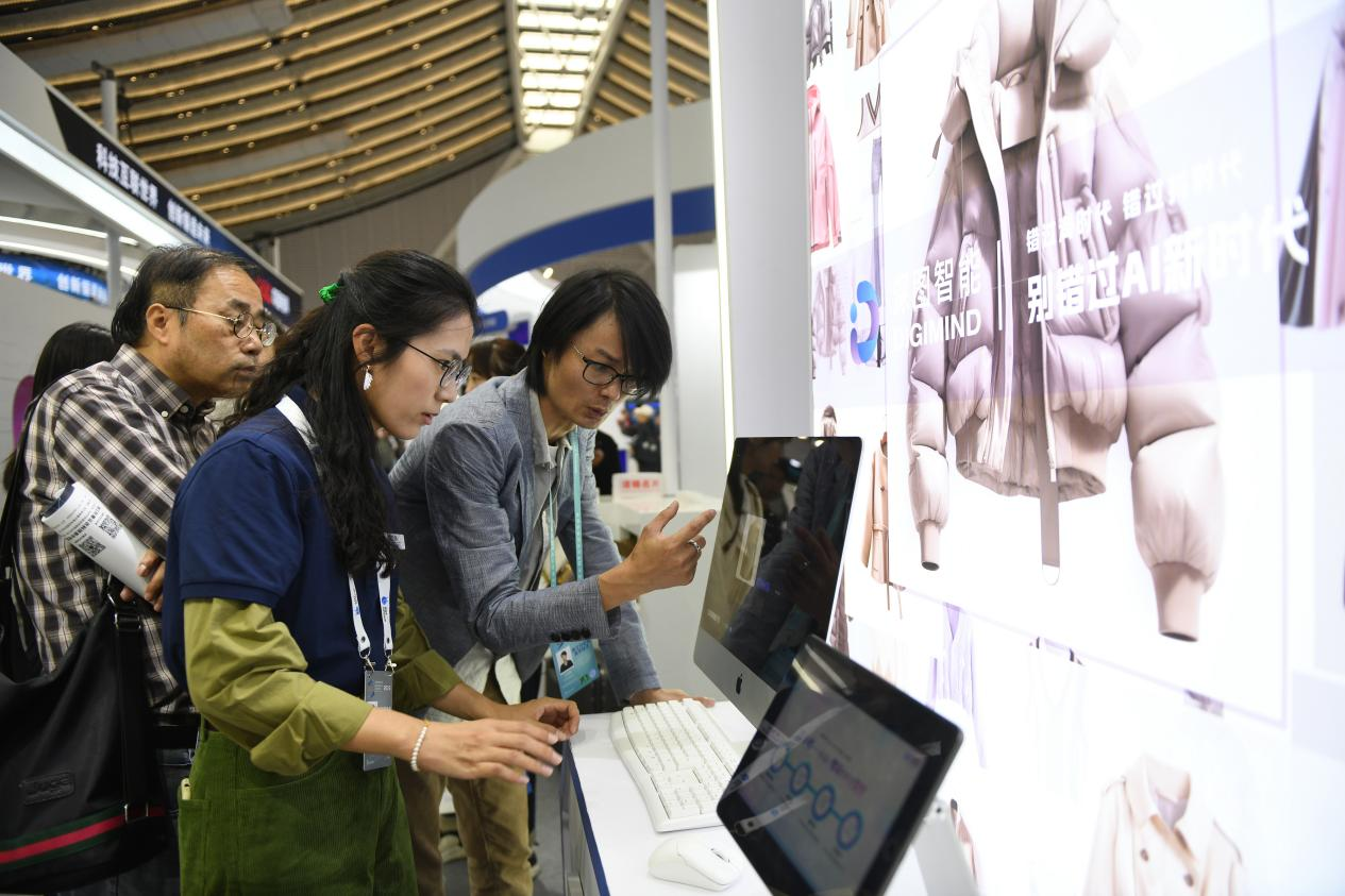 △ 2023年11月9日,“互聯(lián)網(wǎng)之光”博覽會(huì)上,人工智能服裝設(shè)計(jì)技術(shù)吸引參觀者駐足體驗(yàn)。