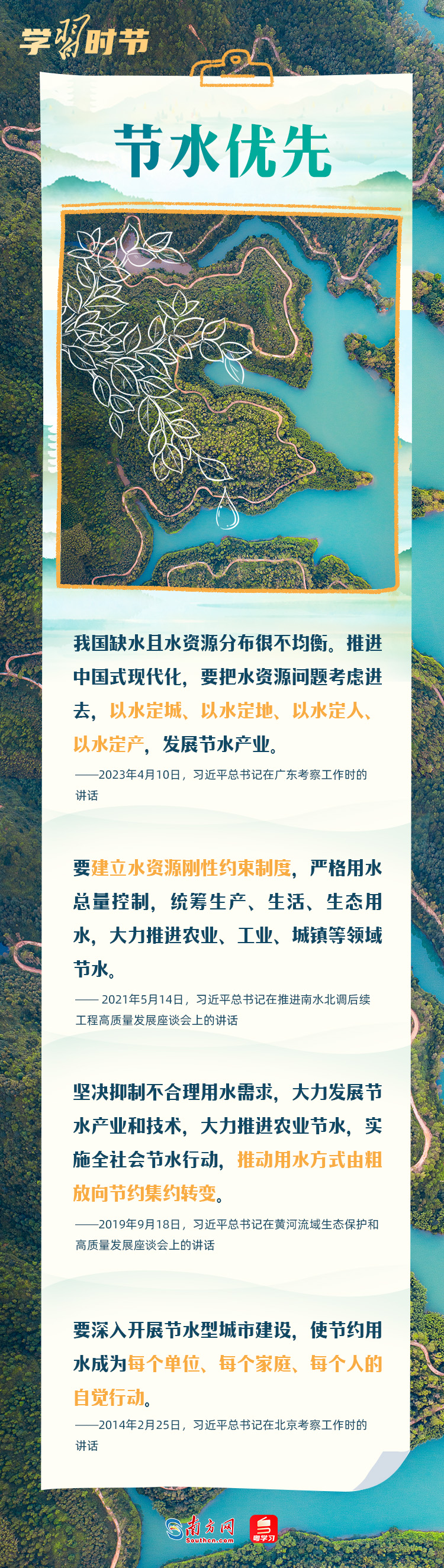 善治國者必善治水。黨的十八大以來,習(xí)近平總書記站在實(shí)現(xiàn)中華民族永續(xù)發(fā)展的戰(zhàn)略高度,親自擘畫、親自部署、親自推動治水事業(yè),就治水發(fā)表了一系列重要講話,為新時(shí)代治水興水提供了科學(xué)指南和根本遵循。3月22日是“世界水日”,讓我們一起重溫總書記關(guān)于治水的重要論述,走好水安全有效保障、水資源高效利用、水生態(tài)明顯改善、水環(huán)境有效治理的高質(zhì)量發(fā)展之路。