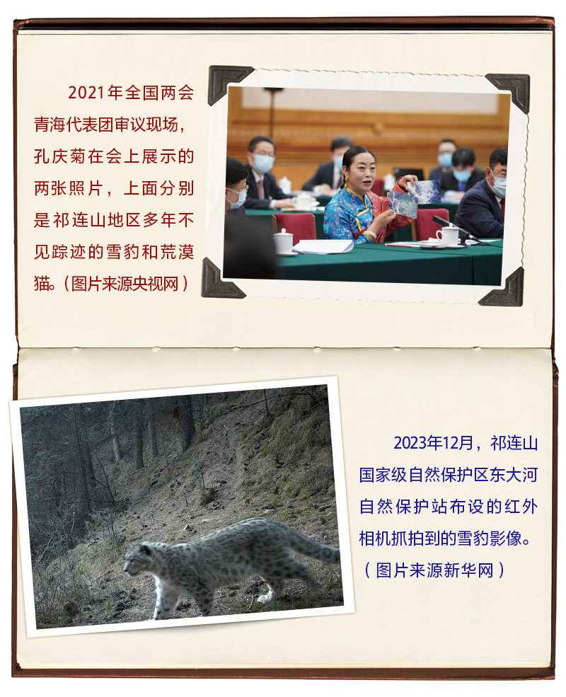 2021年3月7日,在全國兩會青海代表團(tuán)審議現(xiàn)場,孔慶菊代表拿出的兩張“大萌貓”照片,吸引了習(xí)近平的目光。