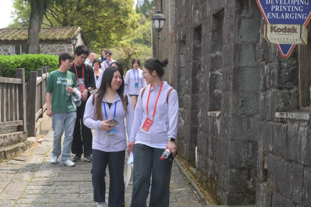 ??3月25日,福州大學(xué)外國(guó)語(yǔ)學(xué)院學(xué)生(前右)與美國(guó)太平洋大學(xué)學(xué)生(前左)在福州鼓嶺老街漫步交流。當(dāng)日,來(lái)自美國(guó)俄勒岡大學(xué)、布朗大學(xué)、奧斯威格高級(jí)中學(xué)等校的美國(guó)學(xué)生與福州大學(xué)學(xué)生齊聚福州鼓嶺,參加“讀懂中國(guó) 相約福建”友好交流活動(dòng)。兩國(guó)青少年走訪鼓嶺老街、萬(wàn)國(guó)公益社、柳杉王公園等,感受鼓嶺百年中外交融歷史風(fēng)貌,了解中美交往往事,暢談期待與希望,再續(xù)中美民間友好交往的“鼓嶺故事”。 新華社記者林善傳攝