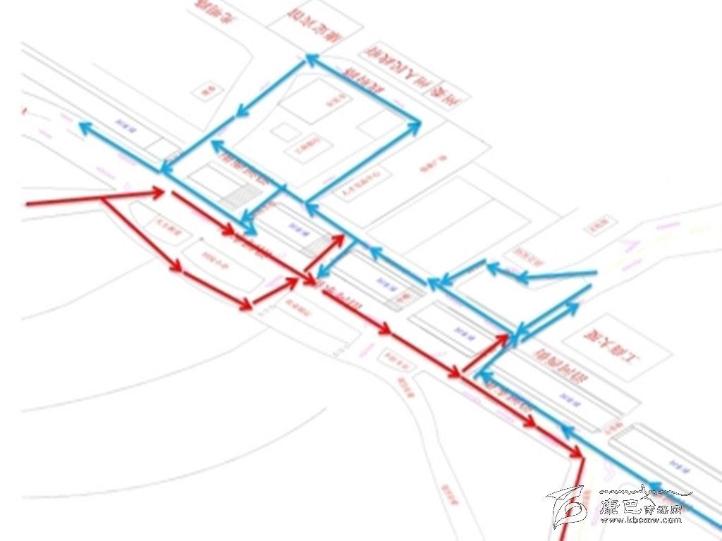 公主橋→向陽(yáng)街→將軍橋→沿河?xùn)|路→彩虹橋→下橋(出城,車(chē)輛可在彩虹橋、下橋左轉(zhuǎn)調(diào)頭上行)