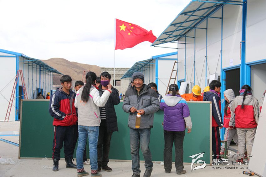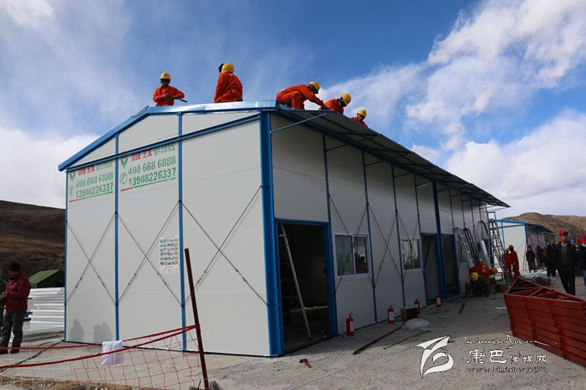 據(jù)現(xiàn)場(chǎng)來自雅致集成房屋有限公司的專業(yè)技術(shù)人員介紹,搭建一間板房,需要先支起框架,然后將面板和頂板逐步安裝。在高原極端天氣下,夜間建造板房難度可以說是非常之大。來自成都的專業(yè)技術(shù)人員們雖然經(jīng)驗(yàn)豐富,但也很少用到適合高原的特殊材質(zhì)材料,很多時(shí)候都需要研究好方案、對(duì)策才能動(dòng)工,所以進(jìn)度有一點(diǎn)耽擱,否則的話一夜的時(shí)間里會(huì)有更多的板房呈現(xiàn)在孩子們的面前。