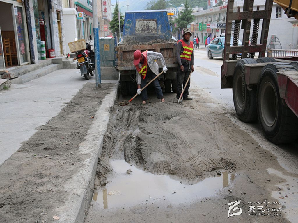 記者在現(xiàn)場看到,康定市政局正組織人員用鐵锨將淤泥鏟起,集中堆放在一起,排干水分后裝車運(yùn)走;環(huán)衛(wèi)工人將路面上的垃圾、淤泥清理干凈,疏通下水設(shè)施,盡快排干路面積水。“我們今天早上六點不到就組織機(jī)關(guān)干部職工、城管執(zhí)法隊員10余名、環(huán)衛(wèi)工人30余名,出動1輛清洗車和3輛機(jī)動運(yùn)輸車,重點清理積存淤泥較多的街道。”市政局局長譚易康介紹說。到下午六點,南郊街道的淤泥已清運(yùn)完畢,路面已沖洗干凈,其他路段淤泥都已集中堆放,市容環(huán)境衛(wèi)生面貌恢復(fù)正常。