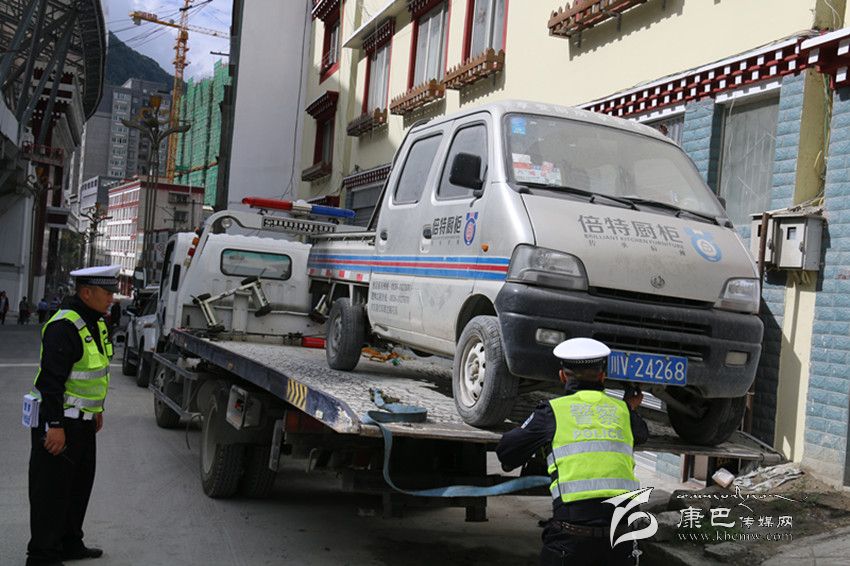 本網(wǎng)訊(記者 鄧安華 唐闖 文/圖)2日上午,記者在康定市北門體育場附近看見幾名交警正在拖移亂停亂放在街邊的一臺(tái)車輛。據(jù)悉,為保證藝術(shù)節(jié)期間康定主城區(qū)的交通順暢,康定市公安局交警大隊(duì)從當(dāng)天起以康定主城區(qū)為中心,嚴(yán)厲查處影響交通秩序的各類突出交通違法行為。