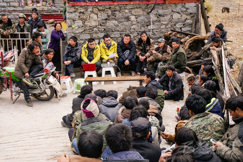 移民工作隊(duì)在吉居孟底溝水電站庫(kù)區(qū)面對(duì)面核查實(shí)物指標(biāo)。