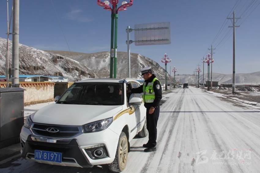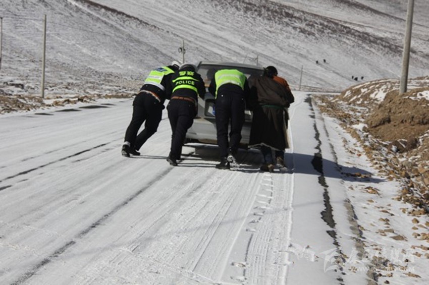 石渠縣公安局交警大隊民警大年三十巡邏時幫助群眾推車 獲群眾好評。