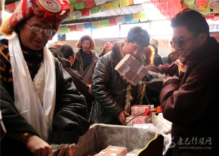 本網(wǎng)訊(刁海瀚 文/圖)日前,在海拔4500米的石渠縣色須鎮(zhèn)紅旗一村村民活動(dòng)中心院內(nèi),色須鎮(zhèn)達(dá)攏合作社將253萬(wàn)余元年底分紅分派給了263個(gè)牧民家庭,其中,建檔立卡貧困戶(hù)達(dá)70戶(hù)。