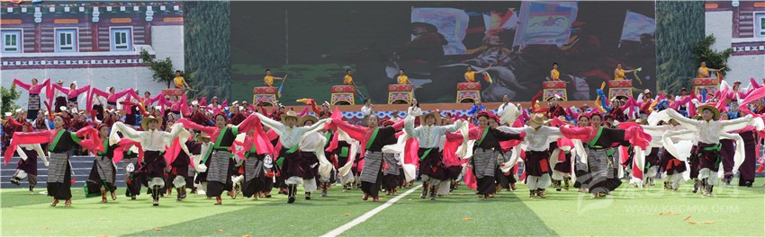 今年的安巴農(nóng)耕文化旅游節(jié)活動(dòng)豐富,場(chǎng)面盛大。開(kāi)幕式上群眾穿上五彩絢麗的民族服飾,唱起吉祥的頌歌,載歌載舞,近兩萬(wàn)人在道孚縣教育園區(qū)體育場(chǎng)歡聚一堂,共享綺麗多姿的風(fēng)光。