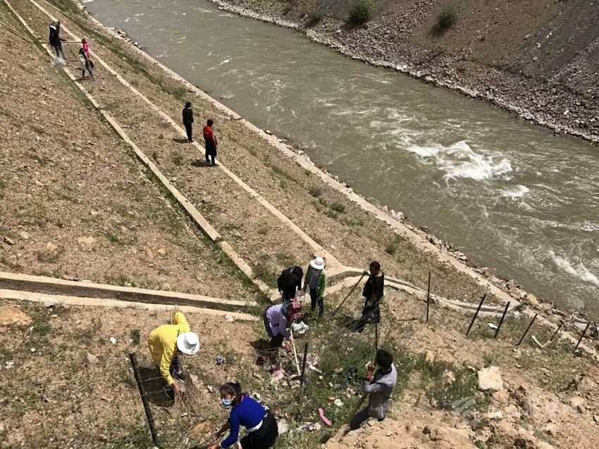 爐霍縣洛秋鄉(xiāng)村民對轄區(qū)河道進行治理。