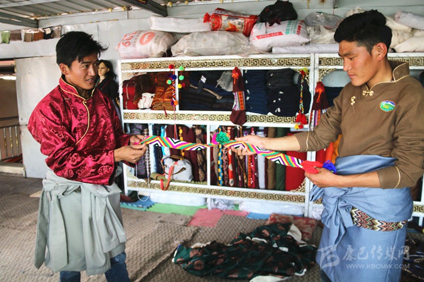 安孜鄉(xiāng)作為白玉縣海拔較高的鄉(xiāng)鎮(zhèn)之一,夏天是十分短暫的,連日來的晴好天氣,也透著絲絲寒氣。牧民阿剛想要量身定做一套過冬的藏裝,8月26日,他來到白玉縣阿察鎮(zhèn),一家民族服飾商貿(mào)公司吸引了他的目光?!拔覀冞@里的服裝面料是本地羊毛和從浙江進的上等面料,做工考究,很多工序是純手工制作,服裝樣式你可以根據(jù)你的喜好指定,我們包你滿意?!钡陠T仁真熱情地介紹。聽了仁真的介紹,阿剛用手捻了一下服裝用料的質(zhì)地,看到印有“祥陽措”商標的精美包裝袋,商店里擺放的五彩斑斕、高端大氣的藏式男女服裝,他有些動心了?!吧a(chǎn)這些服裝的都是我們納塔鄉(xiāng)的牧民,你可以考察我們的服裝用料、生產(chǎn)流程,再作打算?!比收鏌崆檠笠绲亟榻B說。