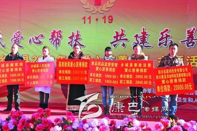 本網(wǎng)訊(何才華 文/圖)11月18日,鄉(xiāng)城縣愛心慈善募捐活動(dòng)在該縣香巴拉休閑廣場(chǎng)舉行,來自全縣的機(jī)關(guān)干部、宗教界代表、個(gè)體工商戶代表、建筑施工企業(yè)等各界人士近2000人為需要救助者獻(xiàn)出自己的一份愛心。活動(dòng)現(xiàn)場(chǎng)募捐資金532998元。