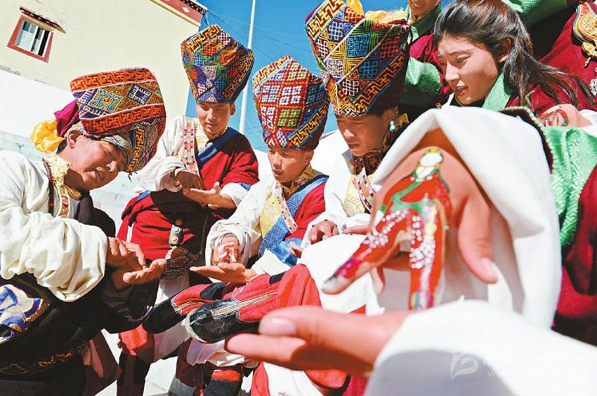 來自鄉(xiāng)城縣青麥鄉(xiāng)的車扎姆對手指鍋莊入了迷,“我畢業(yè)后就應(yīng)聘到了白玉縣藝術(shù)團,看到同事們常常用手指在掌心上跳舞,非常好奇,于是也開始學(xué)習(xí),目前已學(xué)了兩年時間。”白玉縣文化旅游和廣播影視局局長尼瑪擁珍介紹,白玉手指鍋莊從原來少數(shù)年長者會跳已發(fā)展到現(xiàn)在全縣100余人會跳,目前,已成功申報成為縣級非物質(zhì)文化遺產(chǎn),并將逐步申報省級和國家級非物質(zhì)文化遺產(chǎn)。目前白玉縣已啟動了民間歌舞數(shù)據(jù)庫建設(shè)工程,用兩個月時間以視頻、圖片、音頻的方式收錄上百首曲目,還專門編排了“手指鍋莊”音樂達124首,通過以老帶新等方式,讓更多的群眾了解和傳承“手指鍋莊”。?。ɡ钕蛴?攝影報道)