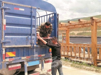 正在搬運送往縣城的蔬菜。