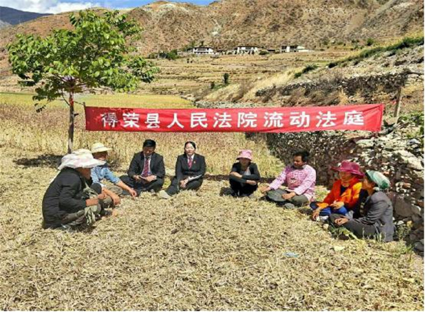 本網(wǎng)訊(縣法院辦 文/圖)近日,得榮縣法院“流動(dòng)法庭”深入該縣日雨片區(qū)開展矛盾糾紛排查和法制宣傳活動(dòng)。