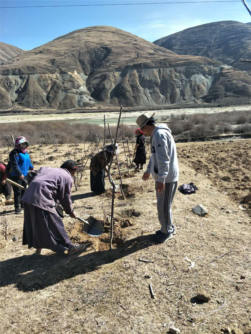 村民正在種植杏樹。