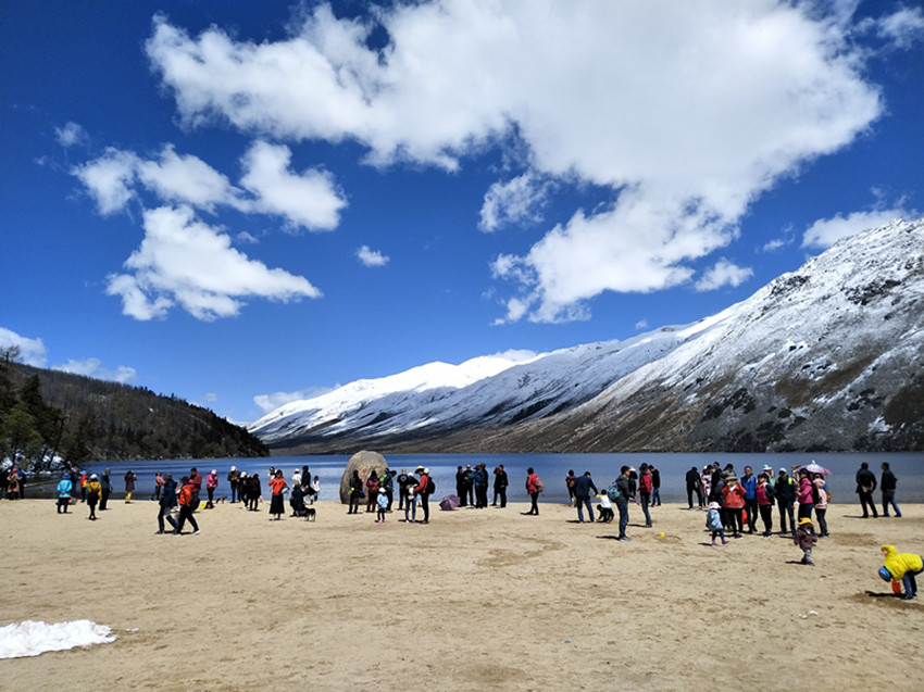 木格措景區(qū)游人如織。